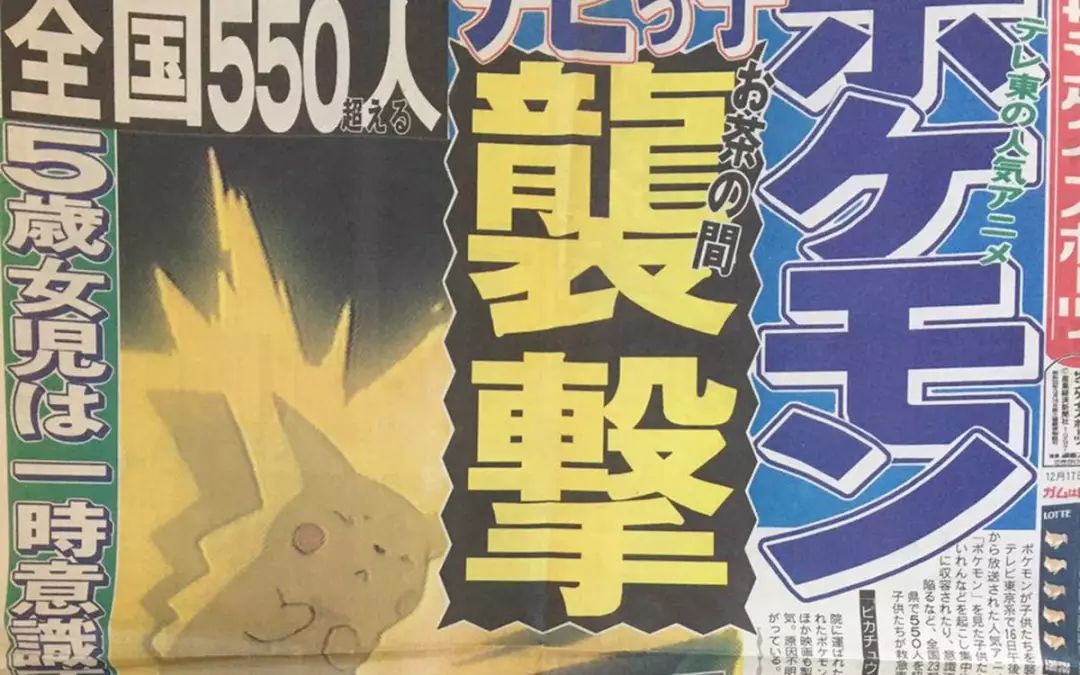 1997 年 12 月 16 日晚上 6 點(diǎn)半,日本的小朋友們紛紛守候在電視機(jī)前等待最新的《精靈寶可夢(mèng)》動(dòng)畫,一開始并沒有出現(xiàn)異常,直到 6 點(diǎn) 51 分 34 秒時(shí)皮卡丘放了一個(gè)技能打爆襲來(lái)的導(dǎo)彈。導(dǎo)彈爆炸后,整個(gè)畫面在紅藍(lán)之間不斷閃爍。在高頻率紅藍(lán)光不斷的刺激之下, 有不少觀眾當(dāng)即出現(xiàn)了頭暈眼花、暫時(shí)失明、抽搐昏迷的癥狀。